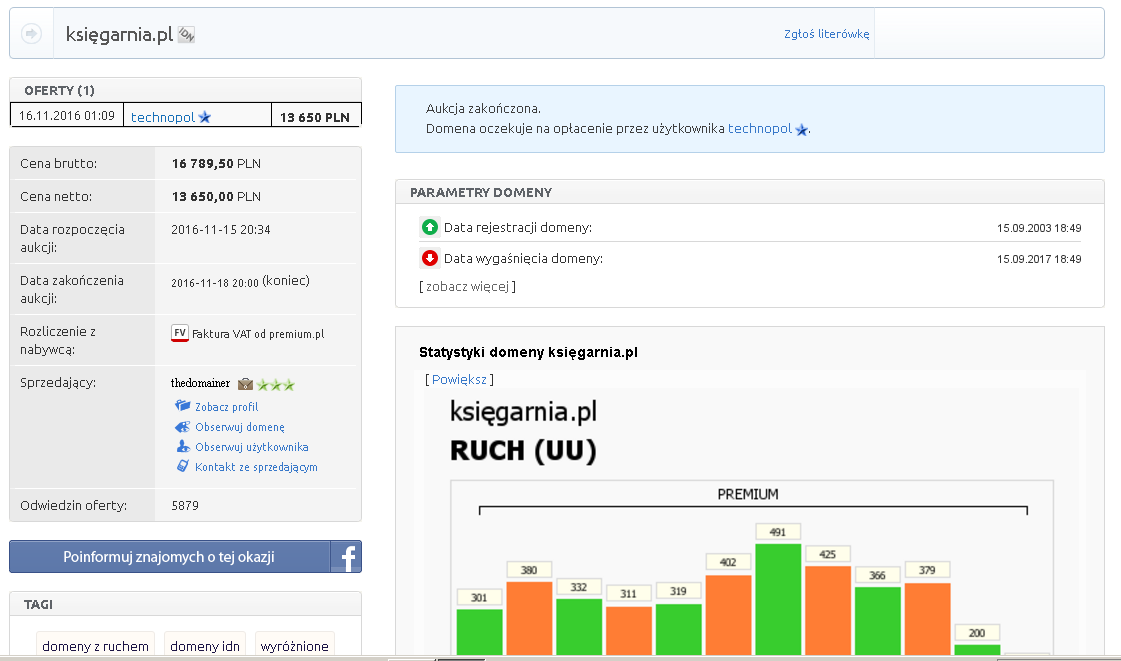 Jak na domenę IDN jest to bez wątpienia bardzo dobra kwota. Niejedne domeny generyczne nIDN nie osiągają takiej ceny. Już niebawem powinniśmy się dowiedzieć, kto jest nowym abonentem. Domena nIDN ksiegarnia.pl należy do osoby fizycznej, czy to właśnie ta osoba jest nowym nabywcą ? Niewątpliwie posiadanie nIDN wraz z IDN podnosi wartość całego kompletu.